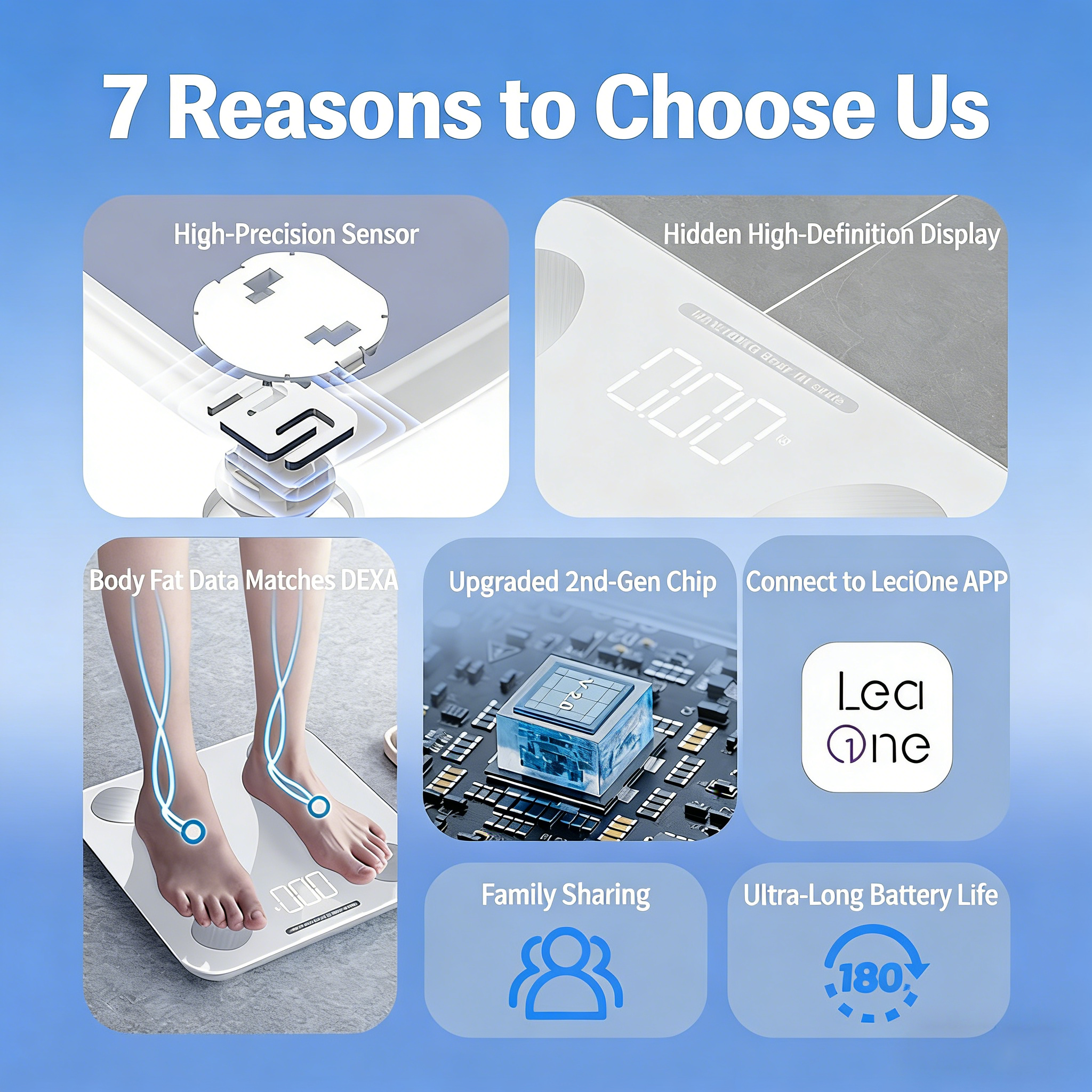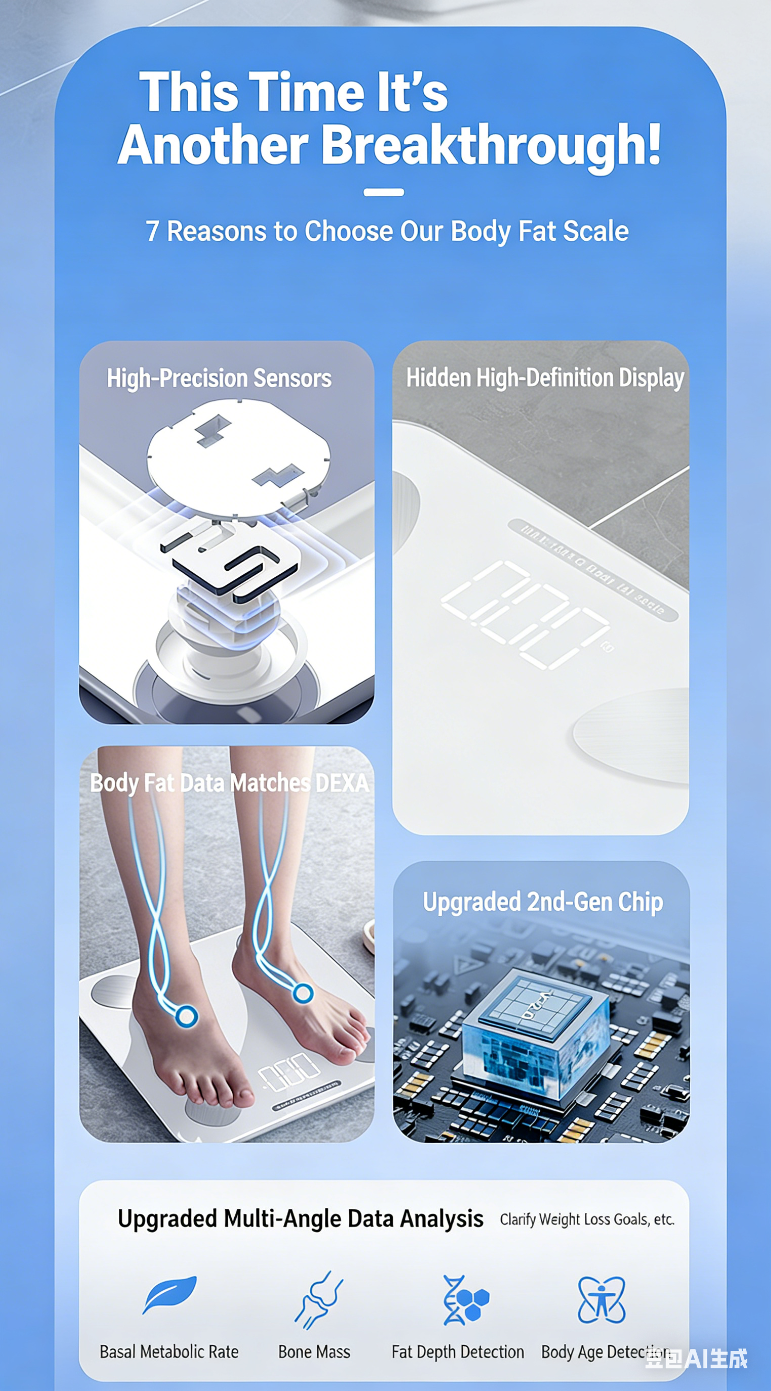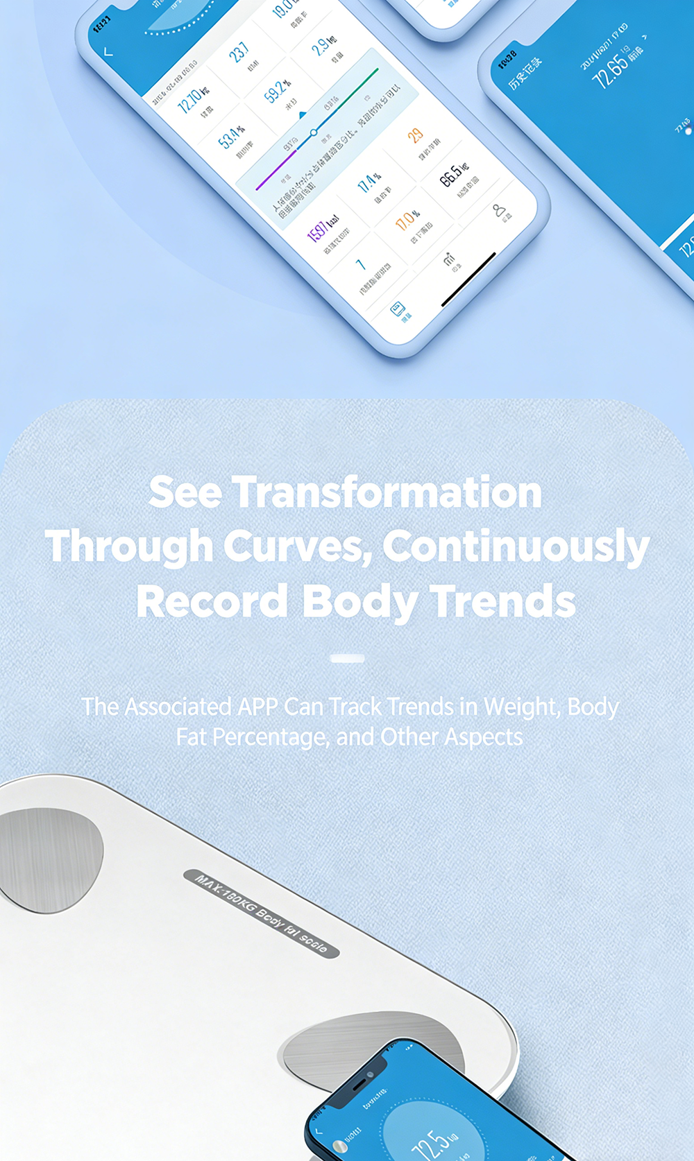 Report Data: Weight; BMI; Body Fat Percentage; Muscle Percentage; Water Content; Bone Mass; Calories; Protein Percentage; Body Age; Visceral Fat Index; Subcutaneous Fat; Standard Weight; Weight Control; Fat Mass; Lean Body Mass; Muscle Mass; Protein; Obesity Level