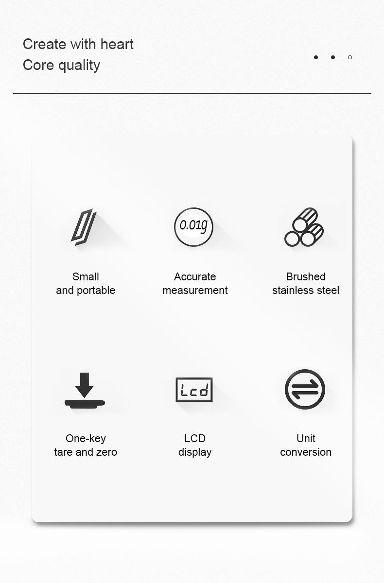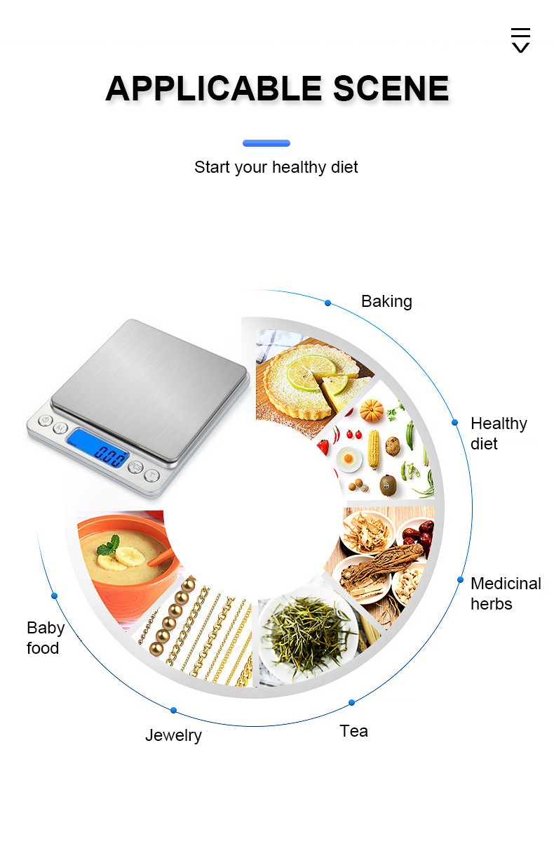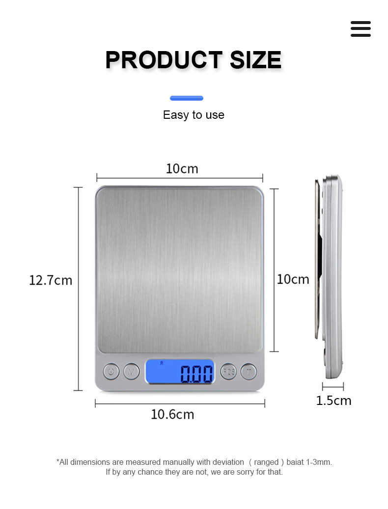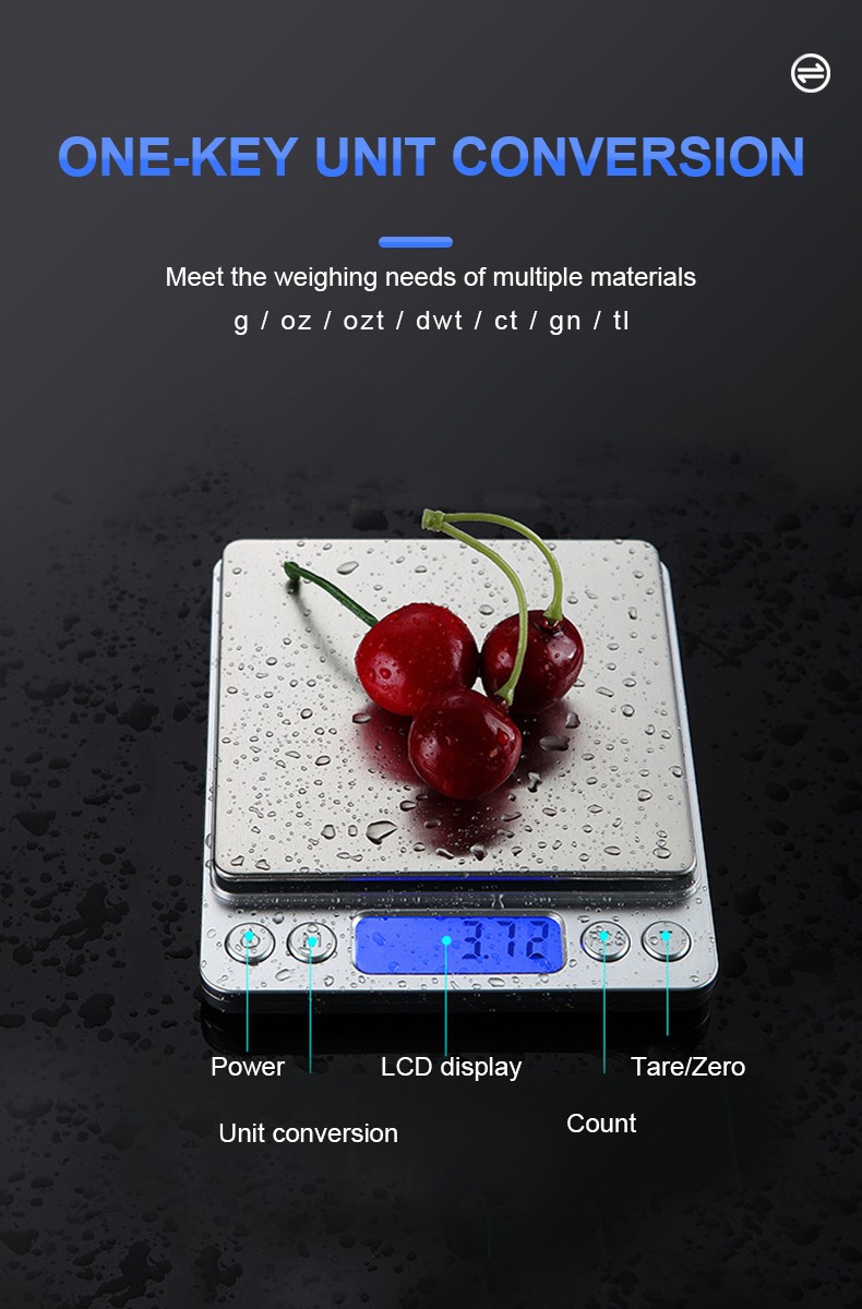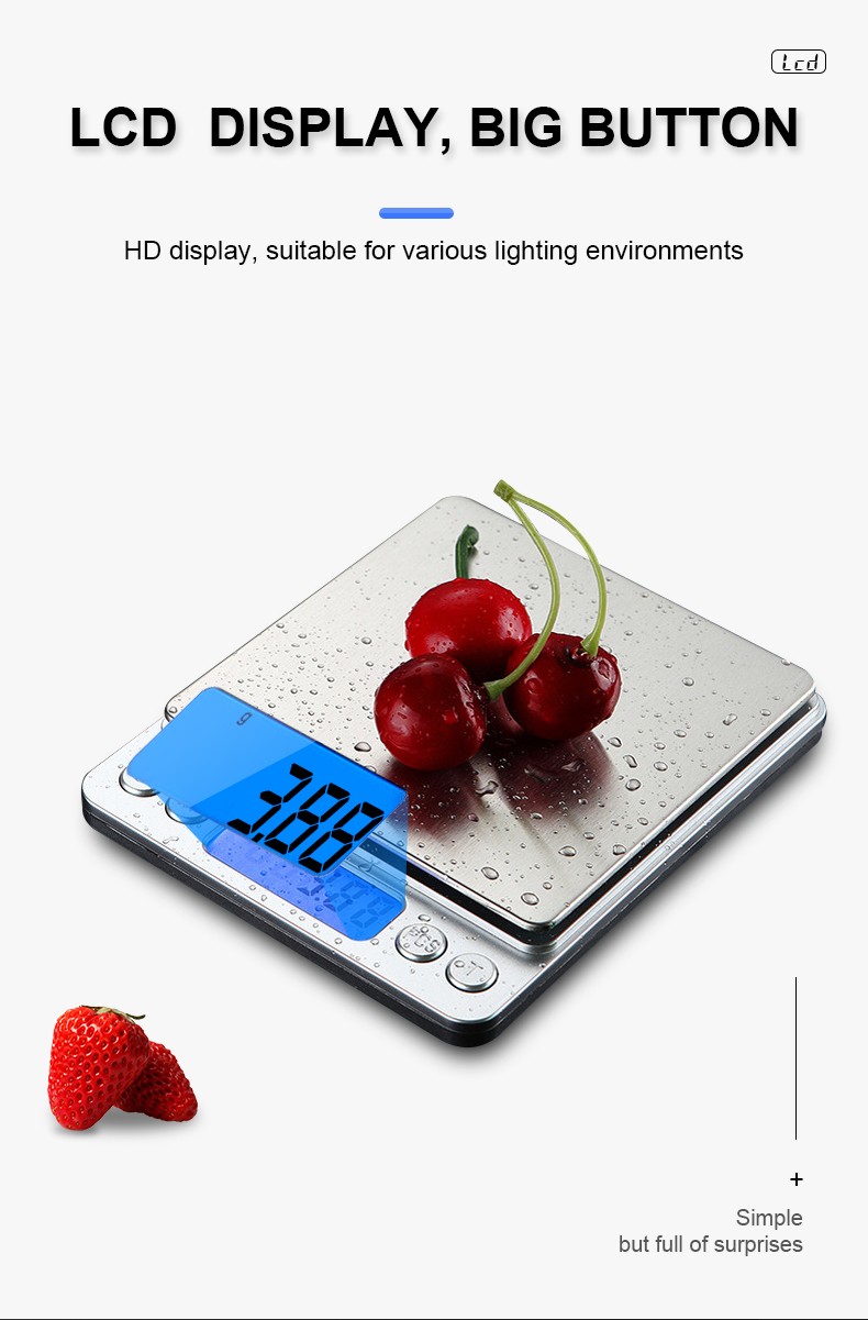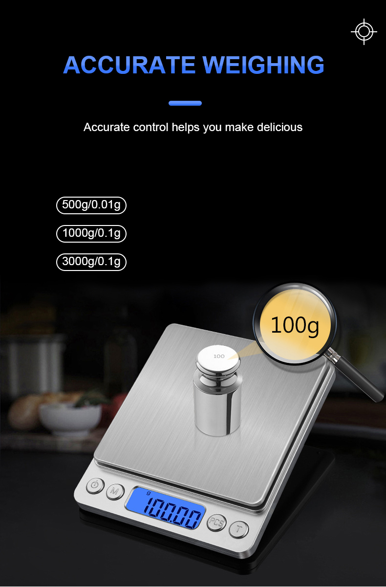 Capacity: 500g/0.01g, 1kg/0.1g, 3kg/0.1g